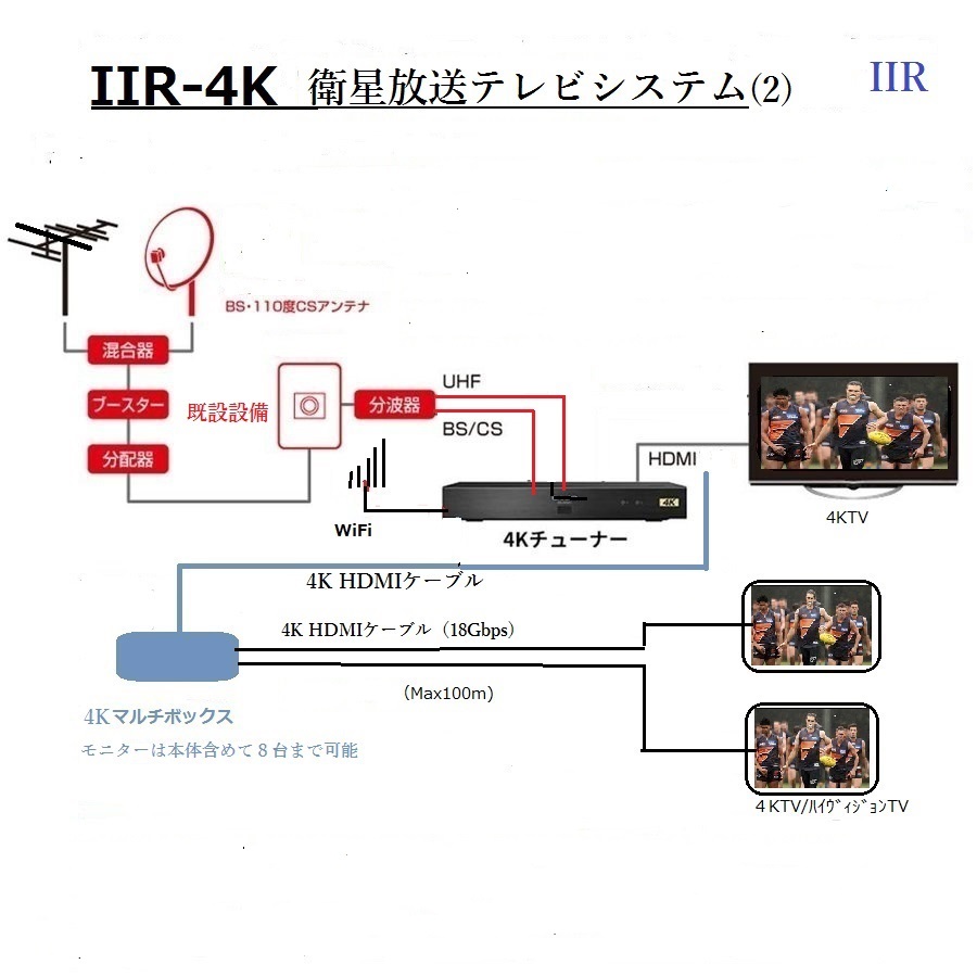 最近は各家庭にも複数台のテレビが設置されておりますが、当該システムは、4Kのテレビ番組を4Kマルチボックスを利用し、他の部屋のテレビにも4K番組を配信できます。 |